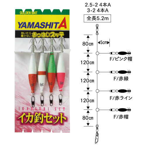 | 516-180 | 鱿鱼钓组 ON 4本 3-2.4 4本A | 3号 | 5.2m | 4号 5cm | 6号 120cm間 |