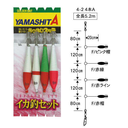 | 523-300 | 鱿鱼钓组 ON 4本 4-2 4本A | 4号 | 5.2m | 4号 20cm | 6号 120cm間 |