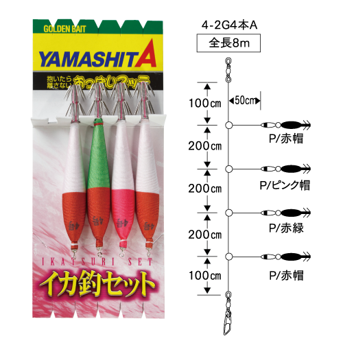 | 516-203 | 鱿鱼钓组 ON 4本 2.5-2 4本A | 2.5号 | 5.2m | 4号 5cm | 6号 120cm間 |